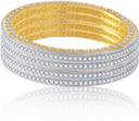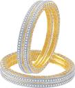 Brass, Silver, Copper Cubic Zirconia Rhodium, Gold-plated Bangle Set (Pack of 4)