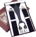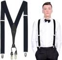 ™Black Shoulder Straps 4 Clips Men's Black Suspenders Belt