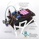 - 1. Arduino UNO - 1, 2. HC-05 Bluetooth Module - 1, 3. L293D Motor Driver - 1., 4. Battery Holder - 1, 5. On/Off Rocker Switch - 3, 6. Female DC Jack - 1, 7. 12v 1 or 2 Amp Battery Charger - 1, 8. Sg90 Servo Motor - 1, 9. Ultrasonic Sensor - 1, 10. Jumper Wires, 11. BO Motors - 2, 12. Req Nut and Bolts, 13. Metal Matt Finished Chassis Parts, 14. UNO Data Cable - 1, 15. Spanners and Allen Keys, 16. Acrylic Joint Links, 17. Schematic Diagram for wiring connections and Arduino code, 18. Mechanical Assembly Manual