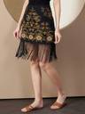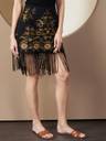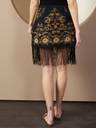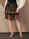 Black embroidered mini skirt, has an elasticated waistband with slip on closure,and a fringes hem