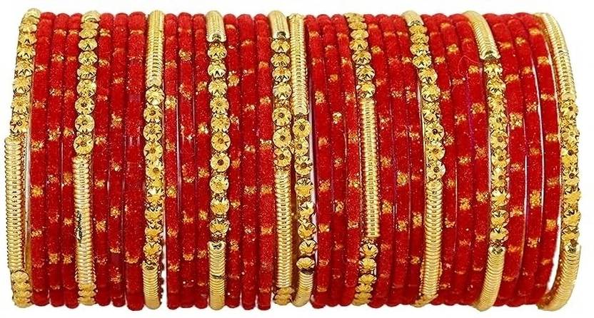 RIJB Enhance your traditional attire with this exquisite Stylish Traditional Glass Bangle Set. Featuring a stunning combination of golden beads and polka dots, these bangles are studded with velvet, adding a touch of elegance and sophistication. Perfect for women and girls, this set of 34 bangles is designed to complement any ethnic outfit, making it ideal for weddings, festivals, and special occasions. The intricate craftsmanship and high-quality materials ensure durability and comfort, making these bangles a must-have accessory in your jewelry collection. Embrace the timeless charm and grace of these traditional bangles and make a statement wherever you go.