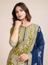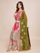 TOP- Georgette With Full inner With Sequence work - PANT - Cotton Crepe Pant - WORK- Rivet moti with fancy sequence With Lace Work - TOP length : 40" inch - BOTTOM : 40" inch - Duptta-2.5 MTRs