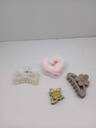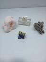 A barrette (American English), also known as a hair slide (British English), or a hair clip, is a clasp for holding hair in place. They are often made from metal or plastic and sometimes feature decorative fabric. In one type of barrette, a clasp is used to secure the barrette in place; the clasp opens when the two metal pieces at either side are pressed together.[1]