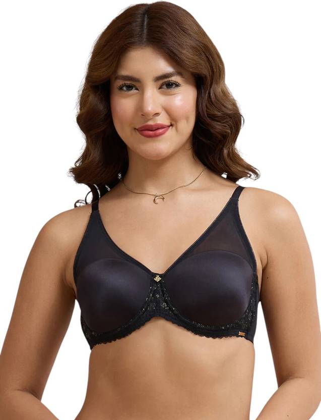 Padded and wired construction for a supported and uplifted look. Balconette cups with sheer mesh neckline for ample coverage. Bralette with moulded cups for a smooth look. Rich lace & shimmer detailing creates a touch of glam. Power-mesh wings provide a breathable, secure fit.