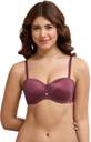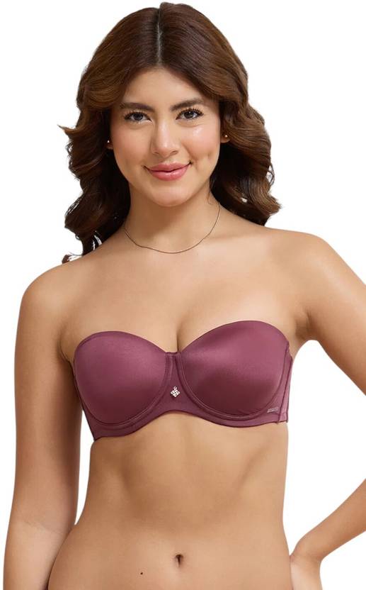 Padded and wired construction for shape and support. Flattering balconette cups for a smooth look under outfits. Gripper elastic along the waist and neckline offers a secure, slip-free fit. Soft side boning provides added structure and wing support. Detachable straps for versatile styling as a backless or strapless option.