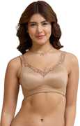 Non-padded & wired construction for support. Full cover cups for no-spill coverage & modesty. 3-sectioned mesh-lined cups for a flattering fit. Delicate floral lace on cups & cradle for a touch of glam. Mesh wings for breathability. Scooped U-back for superior support.