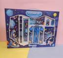 Package Includes : 1 pencil box , 2 pencil, 1 sharpener , 1 eraser , 1 wallet, 1 skipping rope , 1 Diary, 1 scale., This gift set includes a wide range of stationery essentials, ensuring that you have everything you need for writing, drawing, and organizing., Product for your lovely kids., This stationary items kit is very beautiful and useful also. This stationary kit has all school supplies for boys stationary and a complete set, space stationery set ,stationery for kids , Return gift for kids.