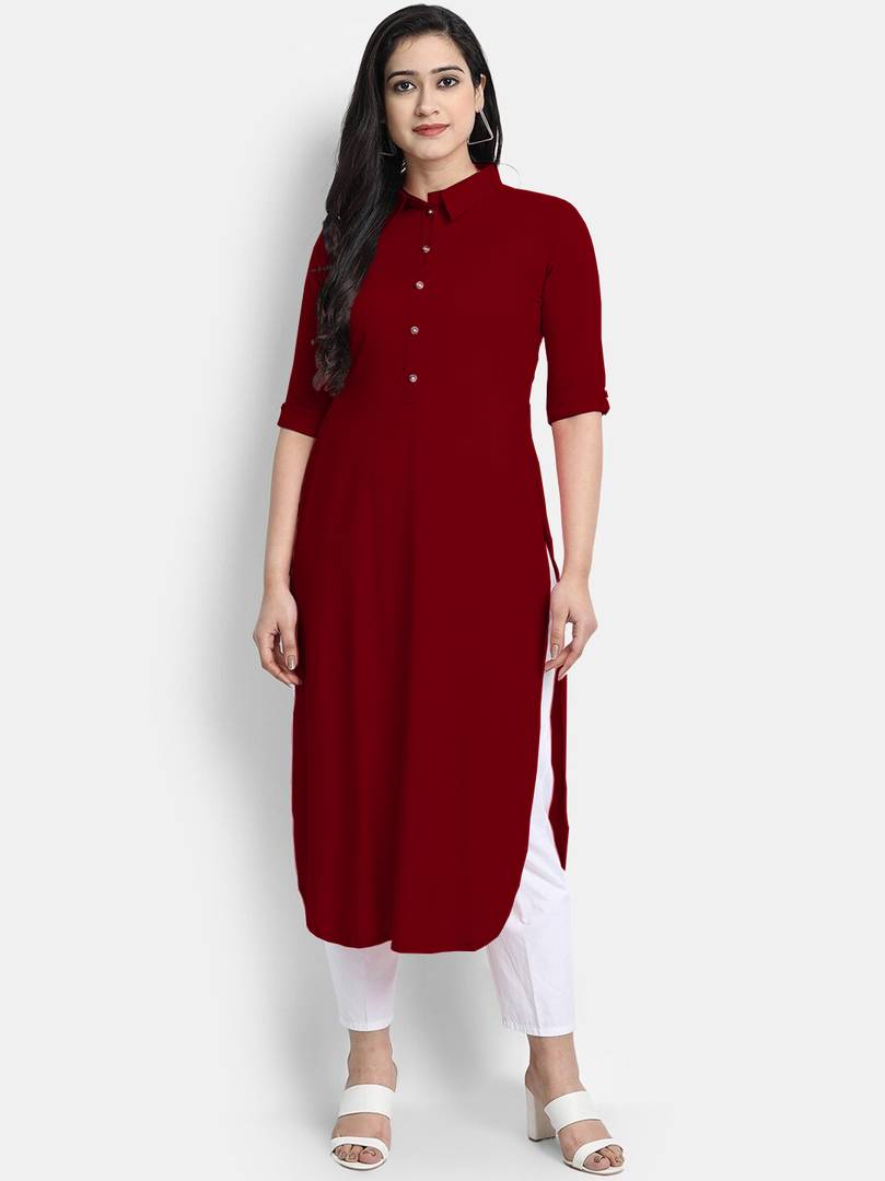 AMAR CREATION Women Solid A-line Kurta (Maroon)
