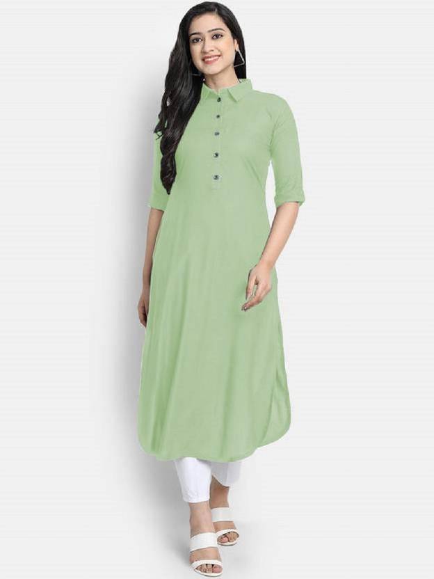 EthnicSarovar Women Solid Cotton Blend Straight Kurta (Light Green)