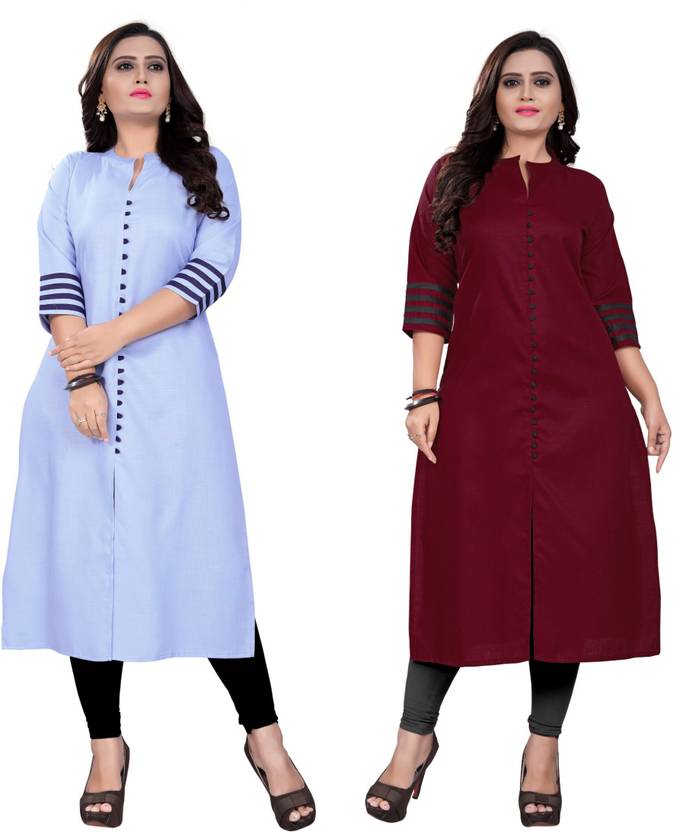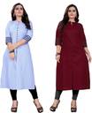 amar tex Pack of 2 Women Solid Cotton Blend Frontslit Kurta  (Light Blue, Maroon)