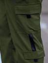 Cargo style with multiple flap pockets for utility and style, Black strap detailing on side pockets for a modern look, Elastic waistband with drawstring for a comfortable fit, Elastic ankle cuffs for a sporty jogger style