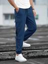 Cargo style with multiple flap pockets for utility and style, Black strap detailing on side pockets for a modern look, Elastic waistband with drawstring for a comfortable fit, Elastic ankle cuffs for a sporty jogger style