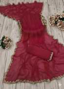 Vraggi Solid/Plain Bollywood Chiffon Saree (Magenta)