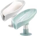 Pack of 2 Leaf-Shape Self Draining Soap Holder with Suction Cup Soap Dish case