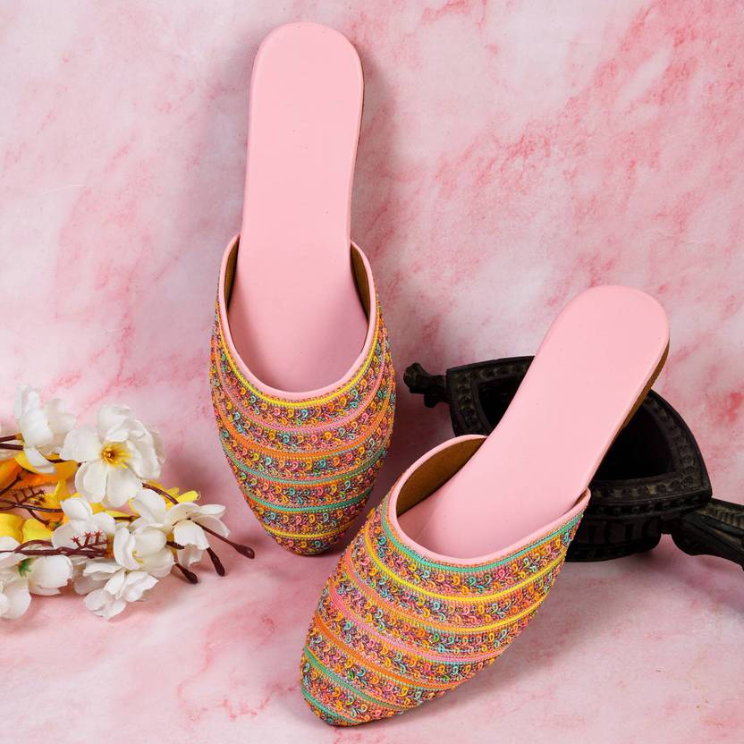 Indulge in the perfect blend of comfort and style with our Embroidered Mules for Women . Designed for the modern women who values both comfort and style , these mules are perfectly designed with comfortable and soft cushion padding for dailywear use .