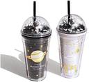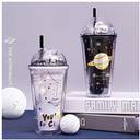 Space Design Sipper Glass with Straw (500 ml) (Pack of 1, Multicolor, Plastic)