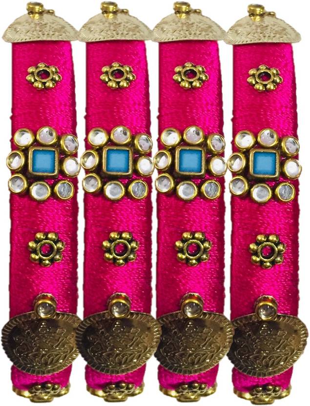 Our Hand-Finished thread work jewellery is quite soft in nature and feel exotic to wear which match for your all special occasions and for casual usage.The jewellery is made by a well trained Workers to give a perfect finishing and to fulfill our customer expectation. Package contains FOUR Piece of bangles.