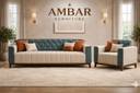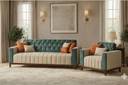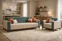AMBAR AM0012 Solid Wood 3 + 1 Sofa Set (Teal Green & Cream upholstery with Walnut Brown wooden legs, Pre-assembled)