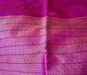 Pesta green and yellow dual tone zari chekered soft silk saree with zari maple leaf buta and magenta border. Zari work palla with resham jhalar and magenta brocade blouse piece. Soft and light weight.