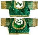 FABRIC :- Phantoom Silk . WORK :- Jari, Sequence , Coding Embroidery and Handwork . SIZE :- 38” stitched and upto 42” extendable . LENGTH :- 14.5” . NECK :- U-Shape Neck . OPEN :- Front open hook . OCCASION :- Bridal , Festival wear Blouse . WASH :- Normal Wash . NOTE :- Color may be little different from image because of different display lights .