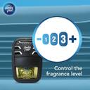 To control the strength of the fragrance, the freshener comes with options for easy intensity regulation.