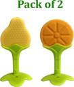 Ambiaim International Fruit Shape Silicone Teethers Soft Stick Chews Nibbler for Baby Dental Care Teether (Yellow, Orange)