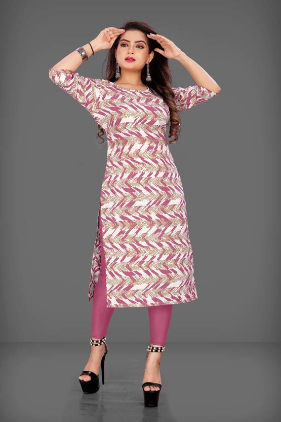 AMBICA CREATION Women Printed Crepe A-line Kurta (Pink)