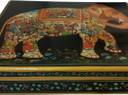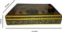 This handcrafted and Hand-painted decorative storage box features a traditional Indian elephant motif, hand-painted with intricate detailing. Made using durable materials, the box has a flat rectangular design and is bordered with floral and vine patterns on the sides. Its compact form makes it suitable for organizing a variety of small items such as jewellery, keepsakes, stationery, or craft supplies. Each box is individually hand-painted by skilled artisans, resulting in slight variations that highlight its handmade nature. Ideal for home organization or as a functional décor piece, this box combines utility with cultural craftsmanship.