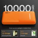 Ambrane 10000 mAh 12 W Mini Pocket Size Power Bank (Orange, Lithium Polymer, Fast Charging for Mobile)