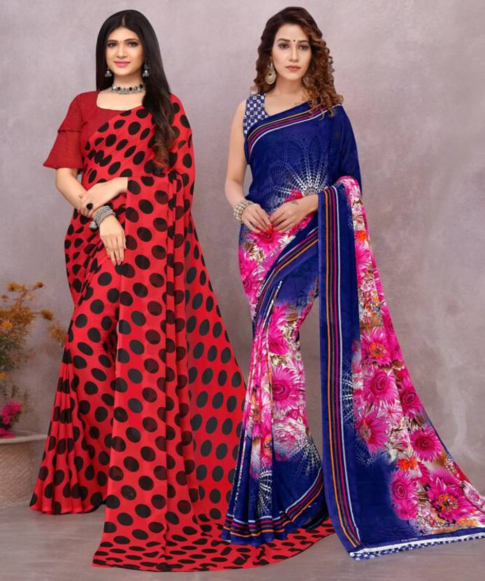 Printed Bollywood Georgette Saree (Pack of 2, Multicolor)