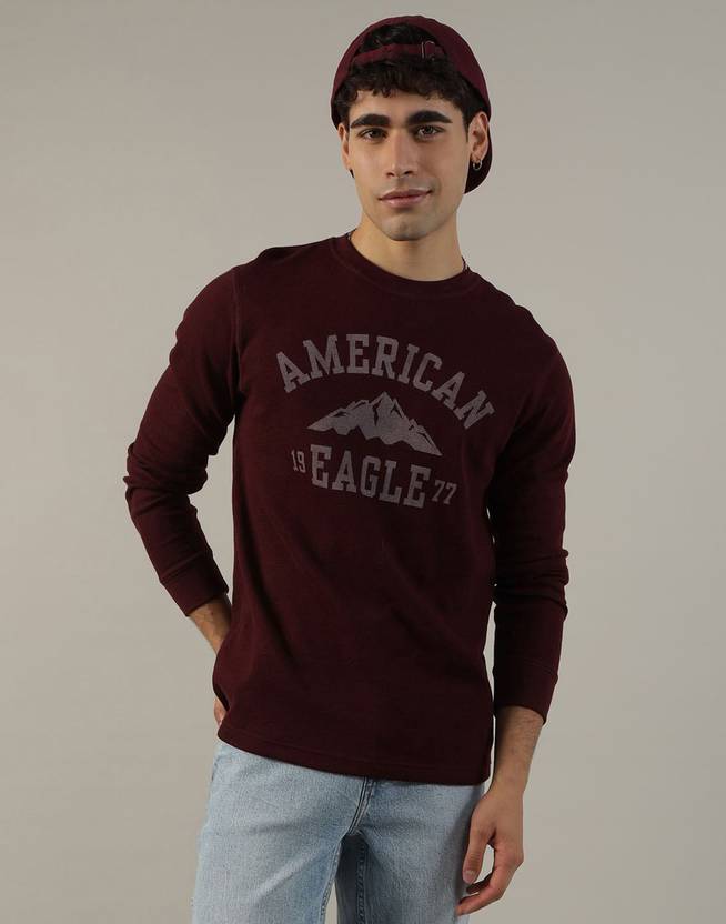 American Eagle Solid Men Crew Neck Maroon T-Shirt