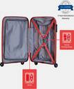 A sturdy spinner with spacious interiors, gives you the optimization of packing space you need. Organizational features include well-defined sections and packing straps on one side to make packing easier and neater. Combination lock provides security so that you can travel stress-free. The retractable handles ease your grip while handling your luggage.