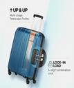 A boxy yet compact spinner with spacious interiors, gives you the optimization of packing space you need. Organizational features include well-defined sections and packing straps on one side to make packing easier and neater. Combination lock provides security so that you can travel stress-free. The retractable handles ease your grip while handling your luggage.