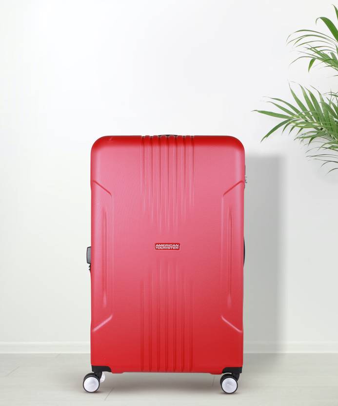 Available in red, this strolley by American Tourister is created for urban travellers. Lightweight and appealing, it features a spacious compartment to accommodate all essentials in a safe manner. Made of polycarbonate for durability, it has push-button handle for easy dragging.