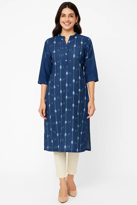 Women Geometric Print Cotton Blend Straight Kurta (Blue)