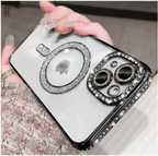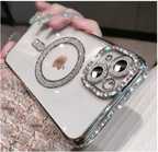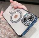 AMEYAA Back Cover for Apple iPhone 14 Magsafe Glitter Diamond Camera Protector,Luxury Plated (Blue, Shock Proof, Pack of: 1)