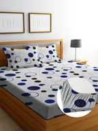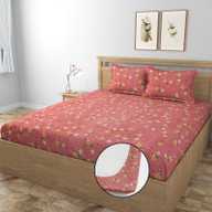 AMEYAA Cotton King Fitted (Elastic) 320 TC Printed Bedsheet (Pack of 1, Sky Rose)