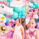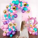 1) 30 x Pink Pastel Balloon, 2) 10 x Purple Pastel Balloon, 3) 10 x Purple Chrome Balloon, 4) 10 x Gold Confetti Balloon, 5) 30 x Light Pink Metallic Balloon, 6) 30 x Light Blue Metallic Balloon, 7) 30 x Light Purple Metallic Balloon, 8) 1 x Unicorn Foil Balloon, 9) 2 x Pink Star Foil Balloon, 10) 2 x Gold Satr Foil Balloon, 11) 1 x Arc, 12) 1 x Glue dot