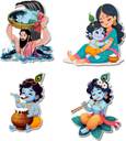 Lord Krishna Fridge Magnet Set of 4 with Indian Mythological Figures - Door Decoration