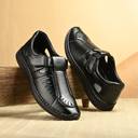 Step into elegance with these stylish ethnic men's sandals featuring a premium leather-like finish and traditional design. Crafted for comfort and style, the slip-on construction with toe loop and woven upper detailing makes it a perfect match for both ethnic occasions and everyday casual wear. Whether you're pairing them with kurtas, pajamas, or denim, these sandals offer both class and comfort