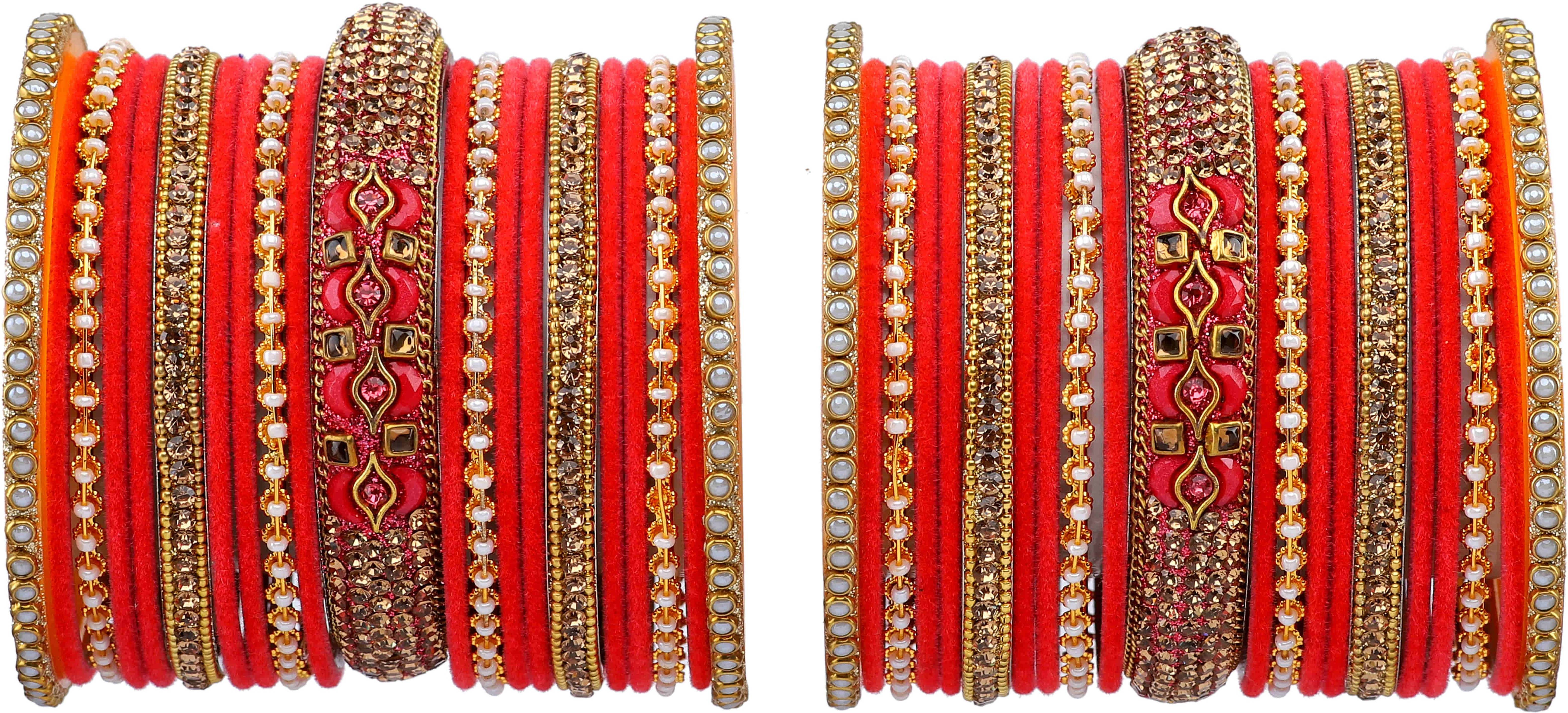 PRODUCT DETAILS: - AMIKA- brings the traditional Indian Inspired Red & Gold colored bangle/ bracelet set available in pack of 42 and having in three Sizes 2.4/2.6/2.8. This bangle set has intricate detailing with zircon stones giving them glitter finishing. This bangle set is Comfortable to wear, supreme in quality and non allergic. Now it's time to elevate your look by adding this beautiful trendy bangles set with your ethnic outfits in every occasion. PERFECT GIFT: - It can be the perfect gift for Mother, wife, daughter, sister, friend,Girlfriend at anniversary, valentine day, festivals or any other celebrations. Make your every moment special with this ideal bangle set. JEWELLERY CARE: - Its always necessary to take care of your jewellery accessories for enjoying them longer, so avoid there contact with perfumes and sprays, Always store them in moist free and dirt free box, Use soft cloth to clean them.
