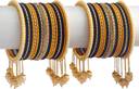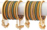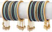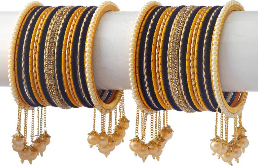 PRODUCT DETAILS: - This elegant charming bangle set is haldi & blue in color having white round shaped pearl & Zircon gemstone studded Kada with velvet in middle giving you a gorgeous Look. This bangle set is available in pack of 42 bangles which is all set to make you feel ethnicity. SIZES: - This bangle set is available in four sizes - 2.2/2.4/2.6/2.8. QUALITY & PRICE: - We are always take stringent measures on product quality by maintaing its price. We assure you that our products are supreme in quality that is non-allergic and Budget friendly too. IDEAL GIFT: - Gifts are meant to express love and affection which can brings smile on your loved ones face. Bangles are more than the ornaments and thus perfect gift for your wife, sister, daughter, mother. OCCASION TO WEAR : - These bangles are shimmering having glitter/glossy finish and you can wear them in weddings, festivals, parties, karwachauth, diwali, raksha bandhan etc. ABOUT AMIKA: - We aim at reforming the fashion trends at reasonable cost in India with our exclusive bangles collection. We are focussed to offer excellent customer experience that can make your everday special. JEWELLERY CARE: - Its always necessary to take care of your jewellery accessories for enjoying them longer, so avoid there contact with perfumes and sprays, Always store them in moist free and dirt free box, Use soft cloth to clean them.