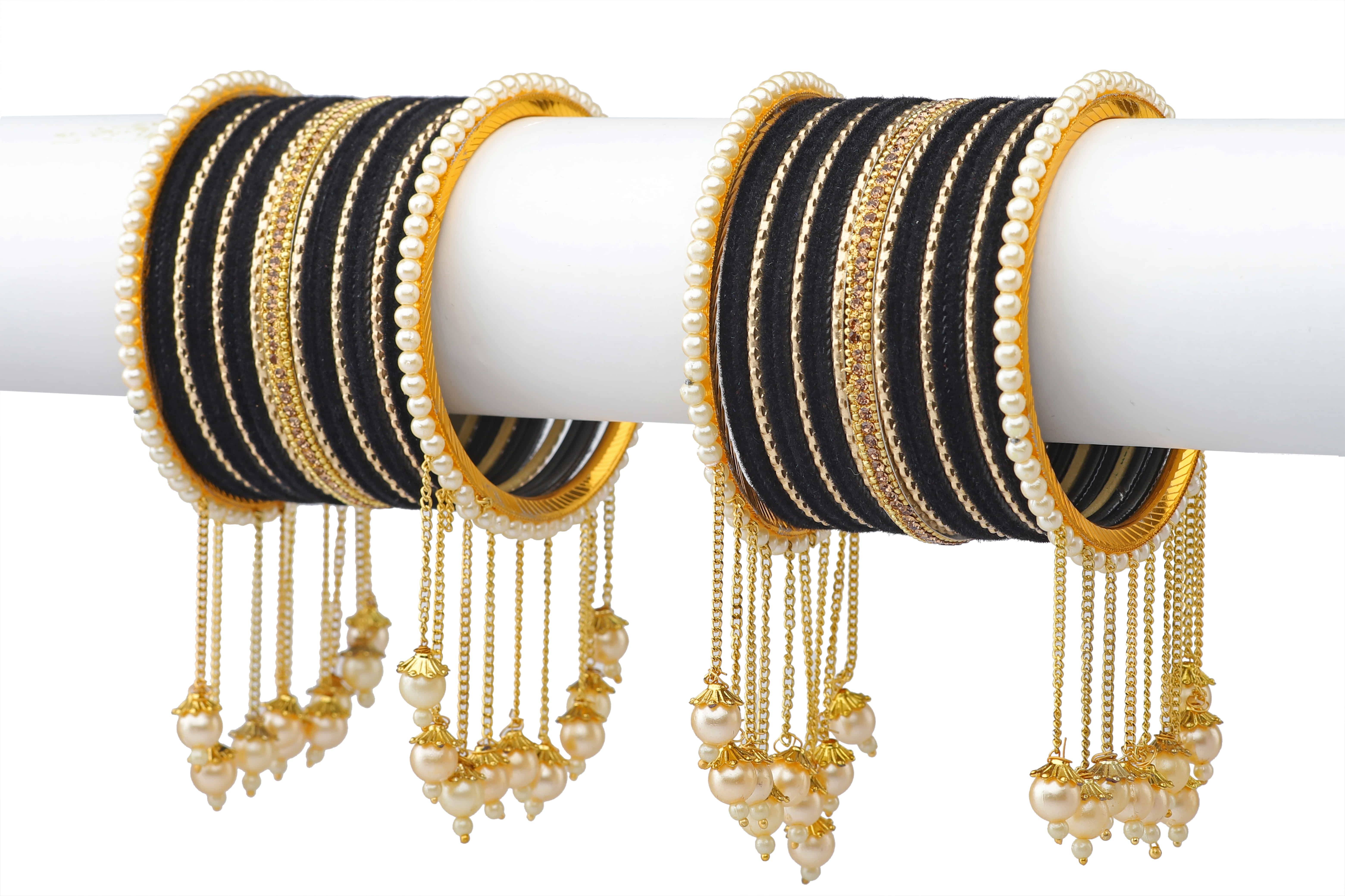 Bangle Bracelet set kada latkan bangle Set for Women bridal and Girls Latest Fashion Latest Collection Designer Stylish Bangle set Festive partywear wedding Pearl studded traditional latkan bangle set bangle set latkan set fashion jewellery under 499 Metal Gold blue Black Gajiri Surf Green Haldi Maroon Orange Red Peach ethnic Pearl bangle set