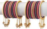 Bangle Bracelet set kada latkan bangle Set for Women bridal and Girls Latest Fashion Latest Collection Designer Stylish Bangle set Festive partywear wedding Pearl studded traditional latkan bangle set bangle set latkan set fashion jewellery under 499 Metal Gold blue Black Gajiri Surf Green Haldi Maroon Orange Red Peach ethnic Pearl bangle set