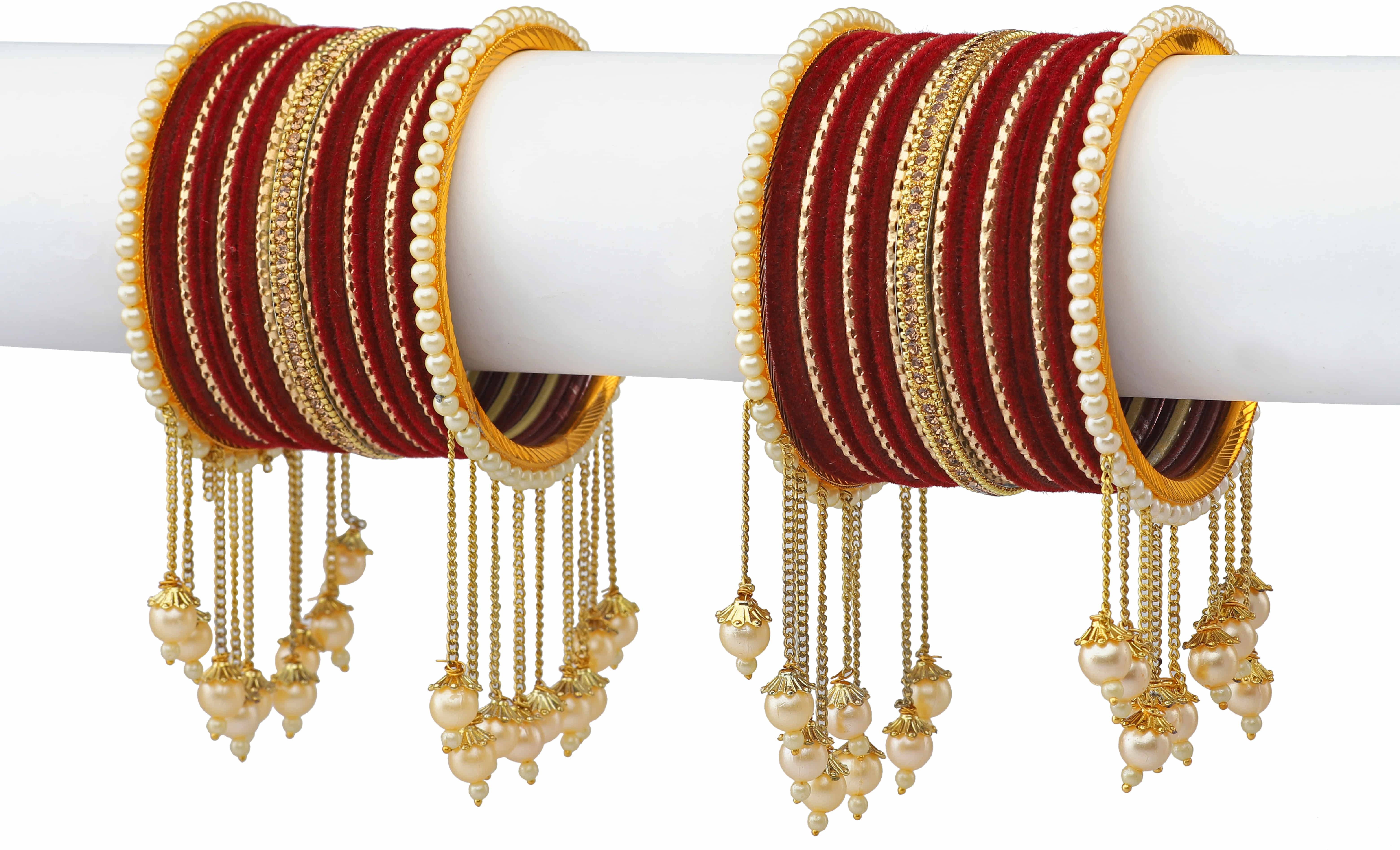 Bangle Bracelet set kada latkan bangle Set for Women bridal and Girls Latest Fashion Latest Collection Designer Stylish Bangle set Festive partywear wedding Pearl studded traditional latkan bangle set bangle set latkan set fashion jewellery under 499 Metal Gold blue Black Gajiri Surf Green Haldi Maroon Orange Red Peach ethnic Pearl bangle set