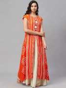 An amazing range of womens ethnic wear in soft and solid colors that looks perfect for regular wear. With beautiful designs and patterns. These apparels are very stylish and comfortable too. Get rid of the regular look this season wearing Gown by AMIRA'S INDIA ETHNIC WEAR. This Red Printed Flared ethnic dress from AMIRA'S INDIA ETHNIC WEAR exhibits Outer Part Printed with Metal Buttons with Tessel on Outer Layer & Inner Part Cotton Jekard along with Round Neck & 3/4 sleeves. Tailored from Rayon. Product Length: 54 Inches.