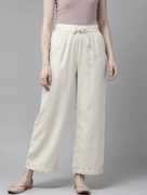 An amazing range of womens fusion wear in soft and solid colors that looks perfect for regular wear. With beautiful designs and patterns. These apparels are very stylish and comfortable too. Get rid of the regular look this season wearing Palazzo by AMIRA'S INDIA ETHNIC WEAR. This Off-White Straight Solid Palazzo from AMIRA'S INDIA ETHNIC WEAR exhibits qureshia lace along with drawstring and elastic closure. Tailored from Cotton Flax. Product Length: 38 Inches.