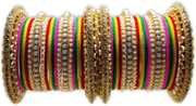 Introducing the exquisite and captivating Metal Valvet Bangles with Shell Finishing Pack of 40 by Ammoli. This stunning collection combines the timeless elegance of metal with the delicate beauty of shells, creating a truly mesmerizing accessory. Crafted with meticulous attention to detail, each bangle boasts a sleek metal construction that ensures durability and longevity.The enchanting shell finishing adds a touch of natural allure to these bangles, making them a perfect choice for both casual and formal occasions. The shells are delicately embedded into the metal, creating a harmonious blend of textures and colors. With a pack of 40 bangles, you'll have a versatile assortment to mix and match, allowing you to create countless unique and stylish combinations.These bangles are designed to effortlessly complement any outfit, adding a touch of sophistication and charm. Whether you're attending a wedding, a social gathering, or simply want to enhance your everyday look, these bangles are a must-have accessory. The pack offers a range of sizes to ensure a comfortable fit for various wrist sizes, making them suitable for everyone.Ammoli takes pride in sourcing high-quality materials, and these bangles are no exception. The metal valvet construction ensures they are resistant to tarnish and maintain their lustrous appearance over time. The shells are carefully selected and polished to highlight their natural beauty, while the metal is expertly crafted to achieve a smooth and refined finish.Embrace the fusion of elegance and nature with the Metal Valvet Bangles with Shell Finishing Pack of 40 by Ammoli. Each bangle tells a story of artistry and craftsmanship, making it a meaningful addition to your jewelry collection. Enhance your style and radiate confidence with these exquisite bangles that effortlessly capture the essence of beauty and grace.