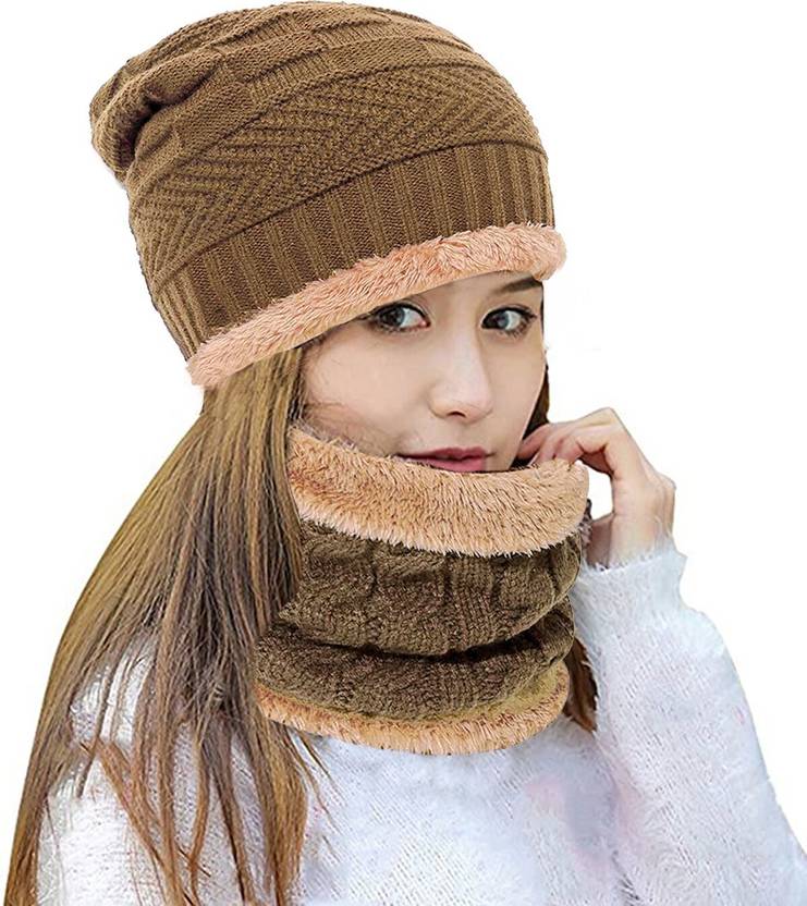 Super Warm winter bannie cap with scarf. Our winter caps will keep you warm and perfect for stylish look in winter.This is made up from high quality of soft wool and fur fabric, both are two have layers.This cap and scarf covers your ears,neck and whole head. Also it has extra comfort. This knit has best fits for ladies,adult and teenagers head. It can easily to fit other sizes as well. Wearing this winter caps during all yours outdoor indoor activities.This stylish beanie has a light weight. Long Durable and easy to care.It comes with a muffler scarf keeps you looking good in cold weather,stay warm all the time.