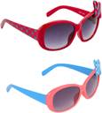 Your little girl will snatch the lime light when she sports any one of this pack of two pairs of rectangular sunglasses by Amour. As these sunglasses are manufactured using optimum quality plastic material, they are highly durable and comfortable. Along with bow appliques, these full framed sunglasses also feature purple colored gradient lenses, and red and pink colored frames. Sunglasses for 6-9 years.